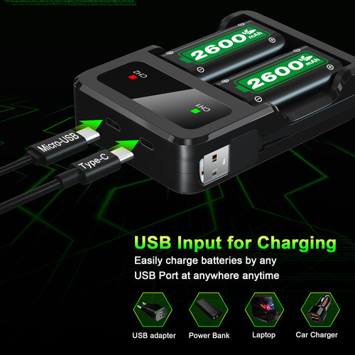 Baterias recarregáveis Ponkor para Xbox Series X|S/Xbox One, baterias de 2x2600mAh com estação de carregamento de alta velocidade para Xbox One S/Xbox One X/Xbox One Elite, carregador Xbox 360 – bateria do controlador Ponkor de alta capacidade de 2600mAh, bateria do controlador Ponkor xbox, tempo de jogo mais do que o dobro das outras. A bateria do controle xbox one pode ser recarregada cerca de 2000 vezes – Para Xbox One/Xbox Series X|s, as baterias recarregáveis são compatíveis com o controle sem fio Xbox One/Xbox Series X|S/Xbox One S/Xbox One X/Xbox One Elite. O carregador de bateria é compatível com todos os carregadores USB. Carregador Xbox 360 (para uma melhor experiência, recomendamos a saída do adaptador de 5V 2A) – Mais segurança. Bateria recarregável Xbox com carregador. Chip inteligente embutido, proteção contra sobrecarregamento/superaquecimento/sobrecorrente/sobretensão/curto-circuito/sobredescarga. Material resistente ao fogo e procedimentos de produção rigorosos ajudam você a jogar com segurança. A bateria recarregável do Rapid Charger Xbox leva cerca de 5 horas totalmente carregada. Luz vermelha significa carregamento, luz verde significa totalmente carregado. Luz vermelha intermitente, ou seja, o pólo da bateria se conecta inversamente – o pacote inclui 2 baterias recarregáveis de 2600 mAh para Xbox, 1 x estação de carregamento de bateria. Há 3 portas no carregador, você pode carregar suas baterias com micro USB/Type-C/USB